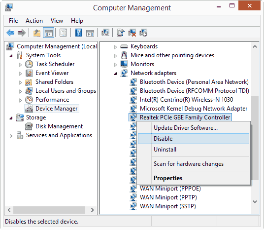 Like Wi-Fi and Bluetooth adapters, you can also disable other unused ports and adapters, some of which are the LAN port, the disc drive and some other devices that you don’t use. This can be done by going to “Control Panel > Administrative Tools > Computer Management”, click on “Device Manager” for the left navigation and device all the ports and adapters you don’t use.